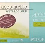 Artistico è una carta per acquerello realizzata con il 100% di fibre cotone a macchina in tondo, una particolare lavorazione industriale che riproduce le tipiche caratteristiche della carta fatta a mano, per questo chiamata anche «mano macchina». Oggi Fabriano rafforza il valore della propria carta “Artistico” attraverso una qualità superiore e una presentazione adeguata alla sua reputazione. Ecco gli aspetti salienti che contraddistinguono questa carta: collatura di superficie migliorata, superficie più resistente, 4 bordi intonsi, filigrana a punto fisso, prodotto Vegan Friendly. Grana Grossa bordi collati.