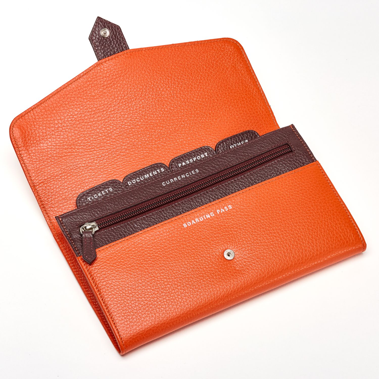 Porta documenti in pelle di vitello tinta in botte. Questo elegante accessorio è stato progettato con cura per offrire la massima praticità e raffinatezza, rendendolo ideale per chi viaggia spesso o desidera mantenere i propri documenti sempre in ordine. La pelle di vitello, tinta in botte, conferisce al porta documenti un aspetto lussuoso e una sensazione al tatto estremamente piacevole. La lavorazione artigianale garantisce una qualità superiore e una durata nel tempo, riflettendo l'attenzione ai dettagli tipica di Fabriano Boutique. All'interno, i tagli rubricati sono studiati per organizzare perfettamente il passaporto, i biglietti aerei, le carte di credito e altri documenti vari.
