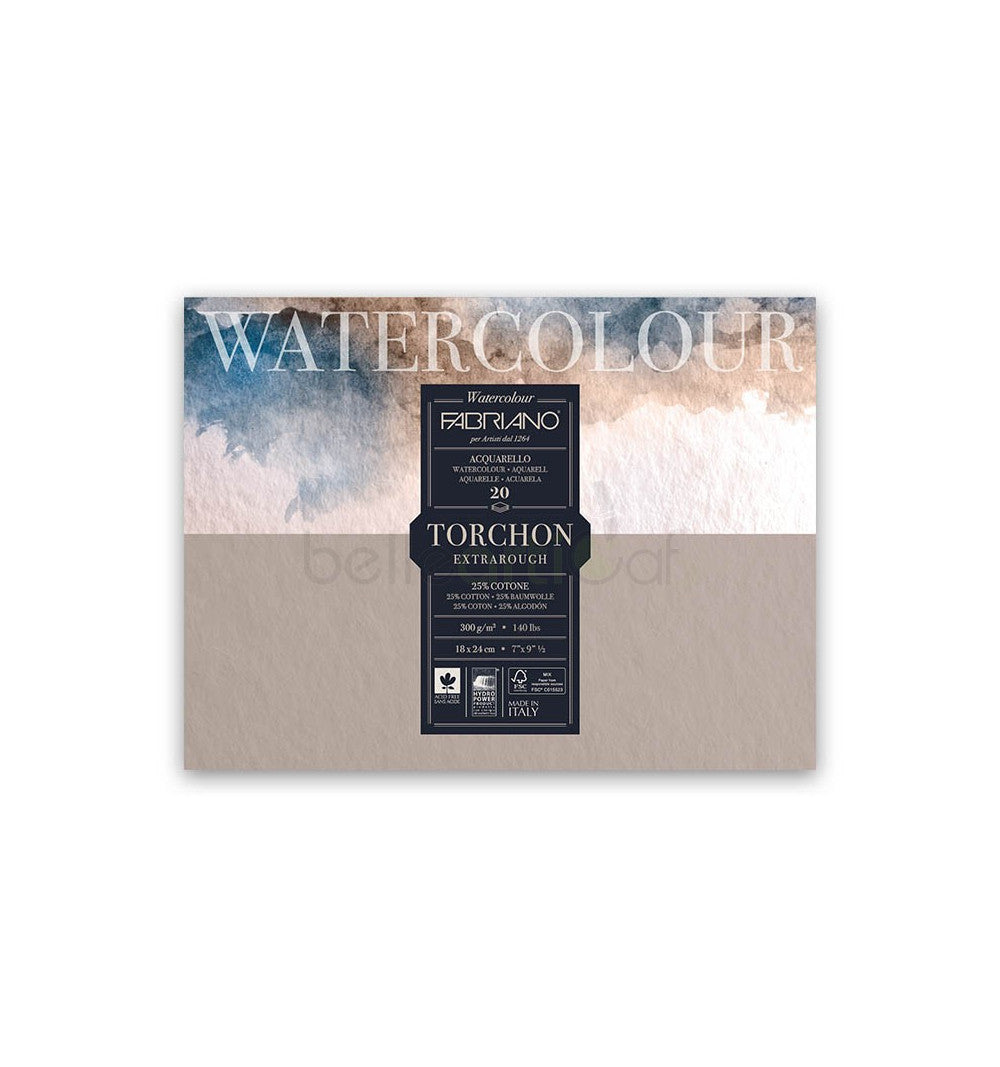 La carta acquerello Fabriano Watercolour Studio Torchon si presenta come una grana rotonda che permette di ottenere risultati pittorici di particolare effetto. La carta è realizzata con una pregiata miscela di cotone (25%) e cellulosa. La collatura sia in massa che in superficie assicura un assorbimento ottimale dei colori. Ideale per acquerello, tempera, gouache, acrilico, inchiostro e disegno.