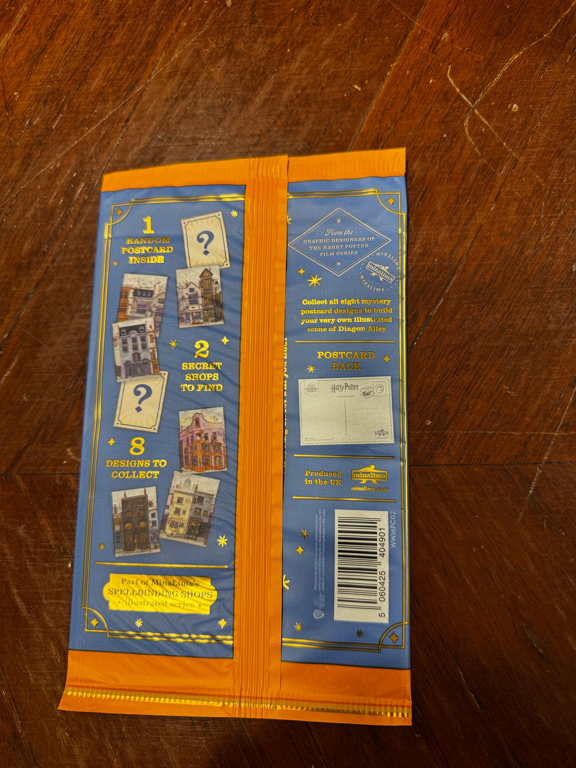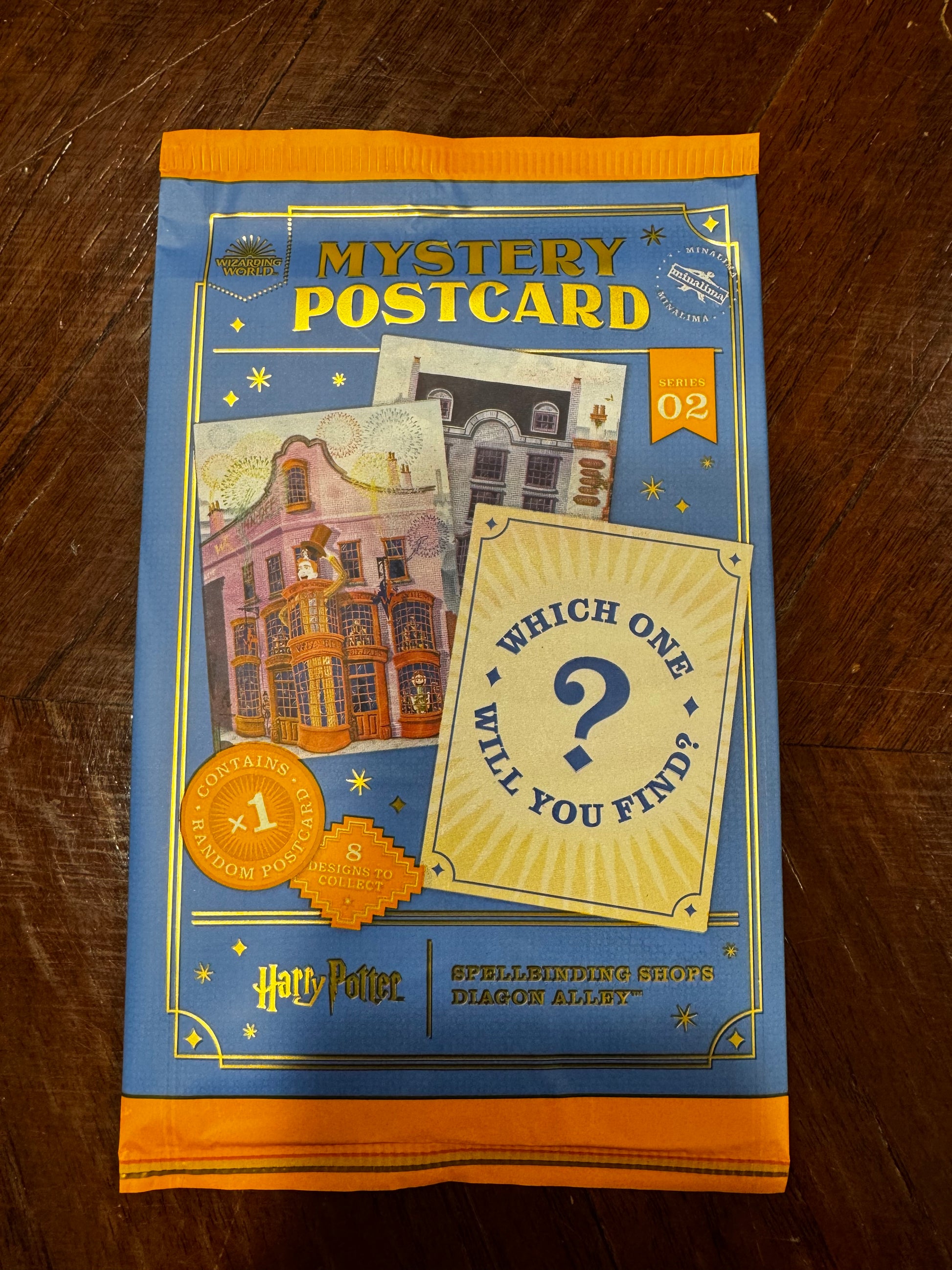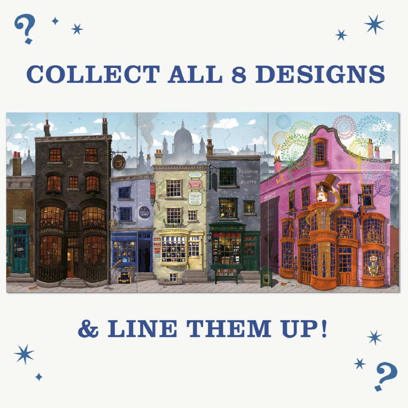 Fai un viaggio di shopping magico e colleziona tutti gli otto disegni di cartoline misteriose per costruire la tua scena illustrata di Diagon Alley. Ognuno dei pacchetti di cartoline misteriose da collezione contiene un design casuale che può essere rivelato solo una volta aperta la confezione sigillata. Parte della serie illustrata Spellbinding Shops,i design ufficiali MinaLima della serie 02 celebrano la magia dell'iconica strada magica in tutta la serie di film "Harry Potter".