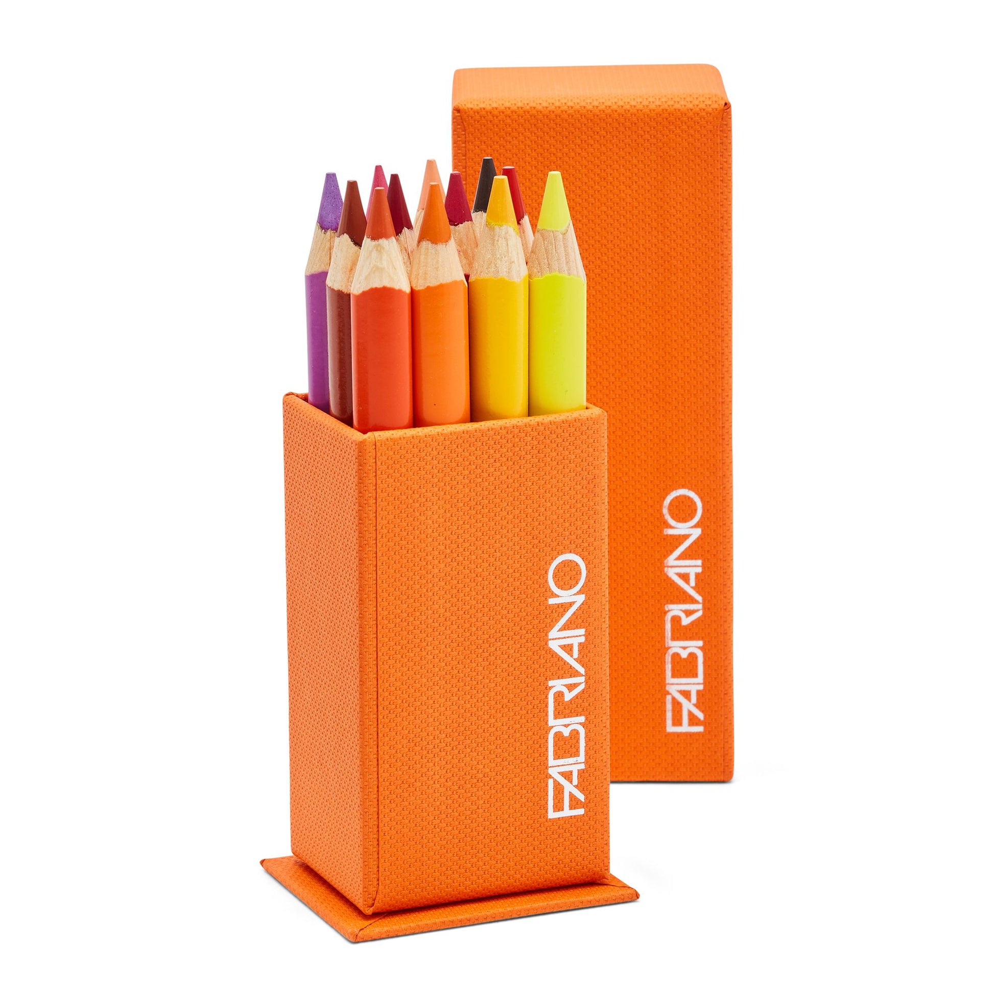 set di 12 matite colorate acquerellabili Fabriano Boutique offre una selezione di tonalità calde, perfette per creare opere vivaci e suggestive. Ogni matita, realizzata con materiali di alta qualità, consente di ottenere effetti acquerello semplicemente aggiungendo acqua, permettendo così una maggiore versatilità e creatività nel disegno. Le matite sono custodite in una elegante scatola portamatite rettangolare, ideale da tenere sulla scrivania.